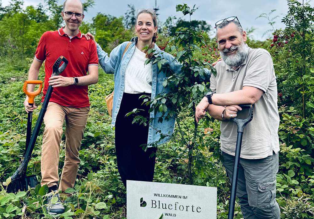 • Über 6.200 Bäume im eigenen Blueforte Wald • Jährlicher CO₂-Ausgleich mit PLANT-MY-TREE® • Ziel: 25.000 Bäume bis 2030 • VIP Partnerstatus bei PLANT-MY-TREE® • Die Blueforte Impact Days, bei denen unser Team anpackt